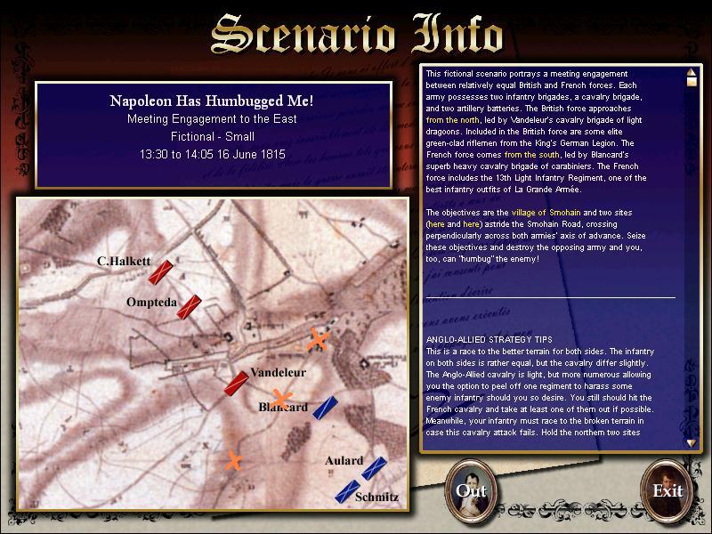 The Commander of the North Army, Maréchal Michel Ney, looked out over the field. He then looked down at his map again, and considered the possibilities. The Emperor, Napoleon, had charged him with taking three strategic locations in this area - a small village a bit to the north, a crossroads, and a road to the south to block the English from using it. There were reports of an English force, roughly equal in size to Ney's own, approaching with the goal of bringing those strategically important locations under English control.